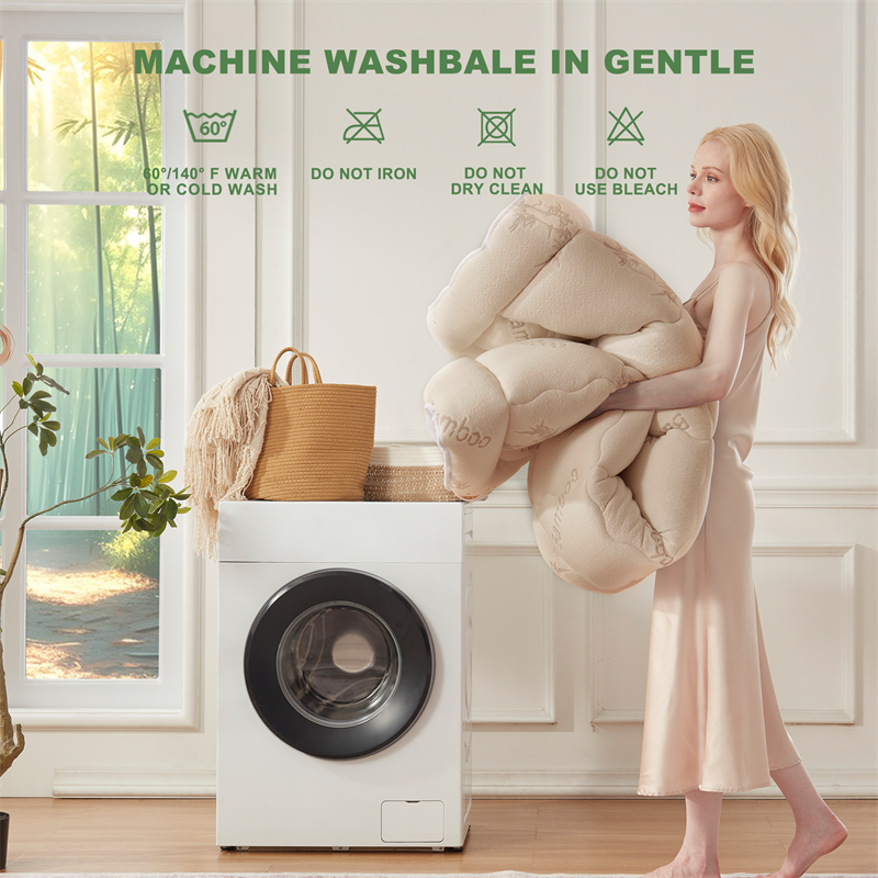This machine-washable bamboo mattress topper stays fresh, fluffy, and easy to maintain for everyday comfort.